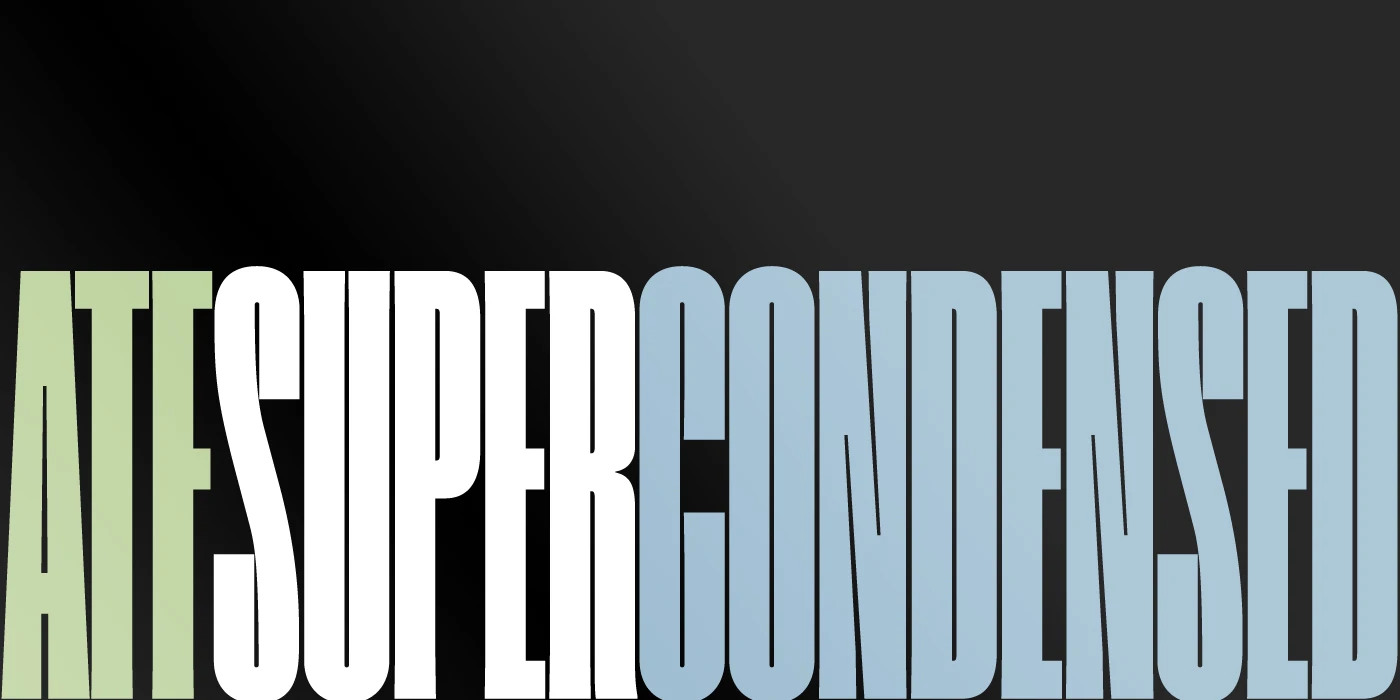 When you need impact in a tight space, ATF Super Condensed offers 42 fonts to try — six widths with seven weights per width. The design is based on Extra Condensed Gothic No. 1, a metal typeface released by Inland Type Foundry in 1905. American Type Founders Company acquired Inland in 1911, and continued to produce the font, as well as Extra Condensed Title Gothic No. 12, an all-caps version of the same design. This headline-making font family is ideal for magazines, book covers, posters, and campaigns.